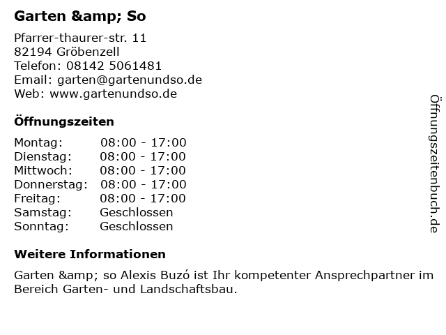 | Öffnungszeiten Garten & So in Gröbenzell anzeigen | |