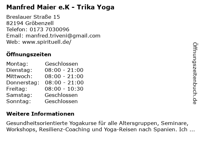 Branchen & Suchbegriffe zu Manfred Maier e.K - Trika Yoga:e.k, maier, manfred, trika, yoga |