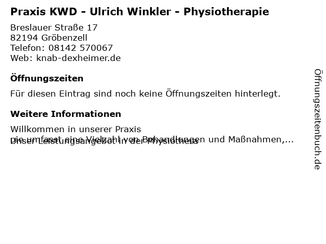 Branchen & Suchbegriffe zu Praxis KWD - Ulrich Winkler - Physiotherapie:kwd, physiotherapie, praxis, ulrich, winkler |