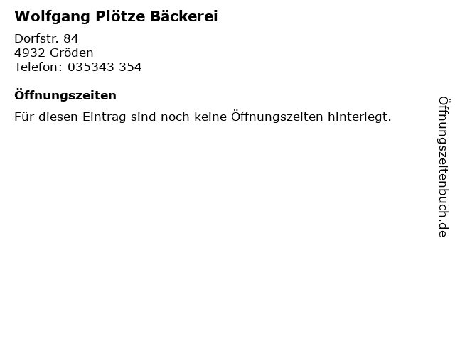 | Öffnungszeiten Wolfgang Plötze Bäckerei in Gröden anzeigen | |