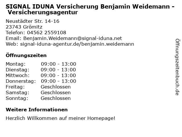 Branchen & Suchbegriffe zu SIGNAL IDUNA Versicherung Benjamin Weidemann - Versicherungsagentur:benjamin, iduna, signal, versicherung, versicherungsagentur, weidemann |