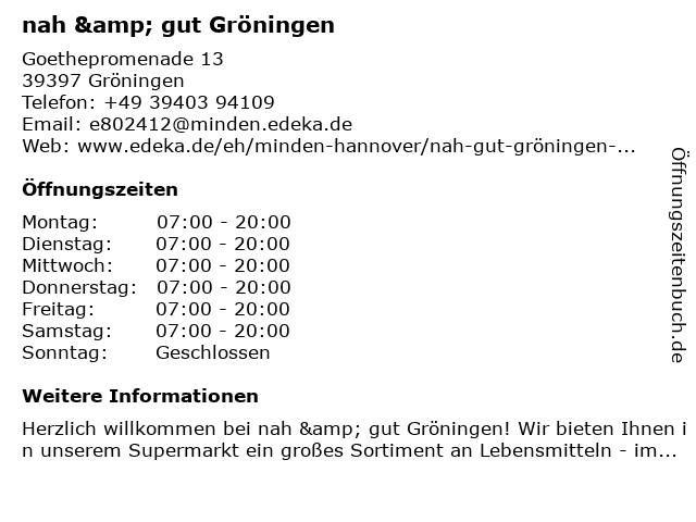 | Adresse nah & gut Gröningen in Gröningen anzeigen |
