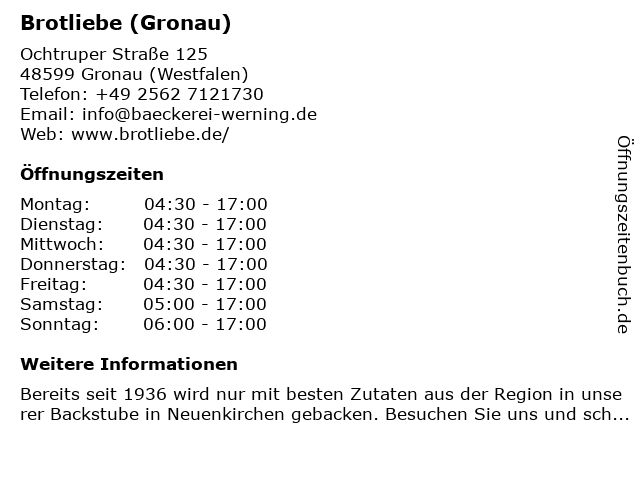 Branchen & Suchbegriffe zu Brotliebe (Gronau):backkunst, backstube, backwaren, brot, brotliebe, brotspezialitäten, brötchen, bäcker, bäckerei, bäckerhandwerk, konditorei, kuchen, kuchenspezialitäten, torten |