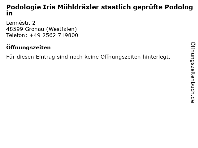 | Podologie Iris Mühldräxler staatlich geprüfte Podologin anrufen | |