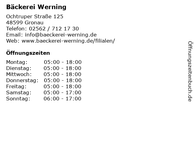 | Öffnungszeiten Bäckerei Werning in Gronau anzeigen | |