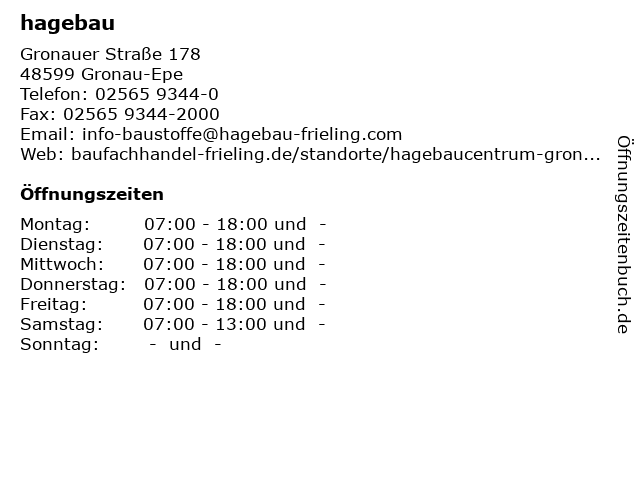 | Öffnungszeiten hagebau in Gronau-Epe anzeigen | |