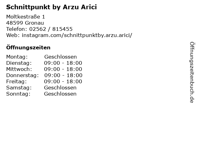 | Öffnungszeiten Schnittpunkt by Arzu Arici in Gronau anzeigen | |