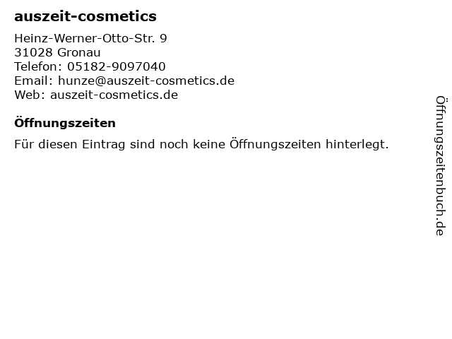 | Telefonnummer auszeit-cosmetics in Gronau (05182-9097040) anrufen | |