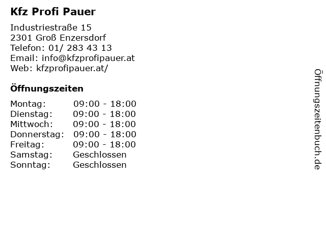 | Öffnungszeiten Kfz Profi Pauer in Groß Enzersdorf anzeigen | |