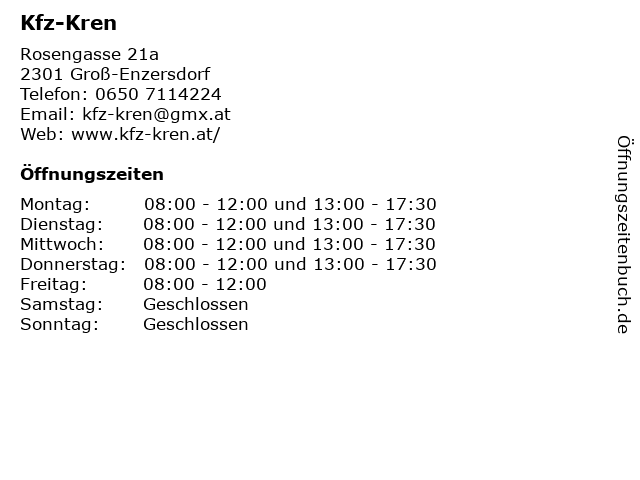 | Öffnungszeiten Kfz-Kren in Groß-Enzersdorf anzeigen | |