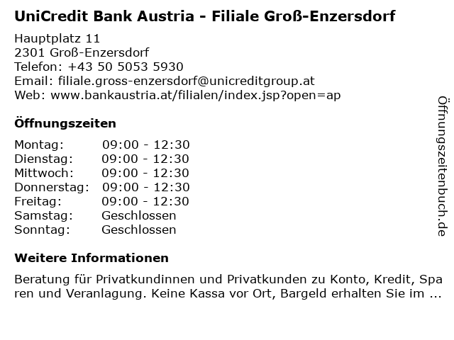 Branchen & Suchbegriffe zu UniCredit Bank Austria - Filiale Groß-Enzersdorf:austria, bank, enzersdorf, groß, privatkundinnen und privatkunden, unicredit |