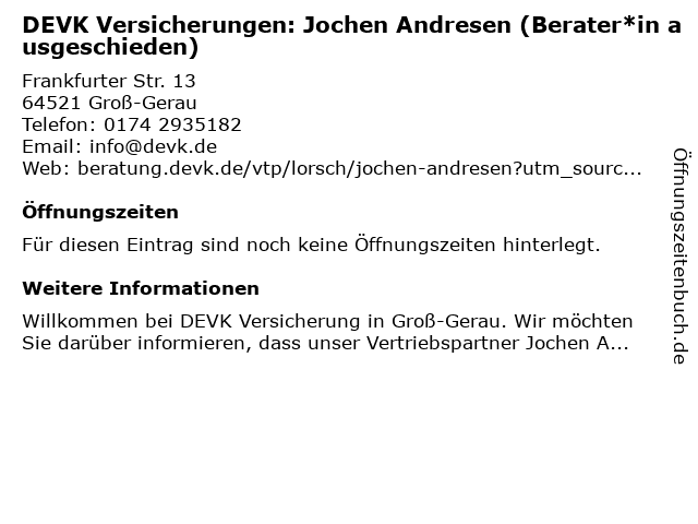 | DEVK Versicherungen: Jochen Andresen (Berater*in ausgeschieden) anrufen | |