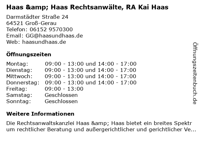 Branchen & Suchbegriffe zu Haas & Haas Rechtsanwälte, RA Kai Haas:haas, kai, ra, rechtsanwälte |