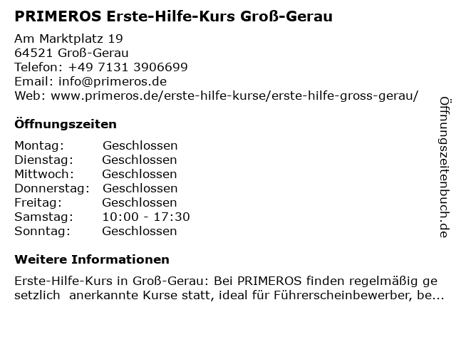 Branchen & Suchbegriffe zu PRIMEROS Erste-Hilfe-Kurs Groß-Gerau:erste, erste hilfe am unfallort, erste hilfe kurs, erste-hilfe, erste-hilfe-kurs, führerschein sehtest, gerau, groß, herz-lungen-wiederbelebung, herzinfarkt, hilfe, kurs, primeros, schlaganfall, stabile seitenlage, verbandmaterial, weiterbildung |