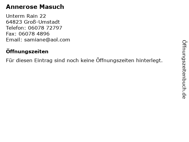 | Öffnungszeiten Annerose Masuch in Groß-Umstadt anzeigen | |