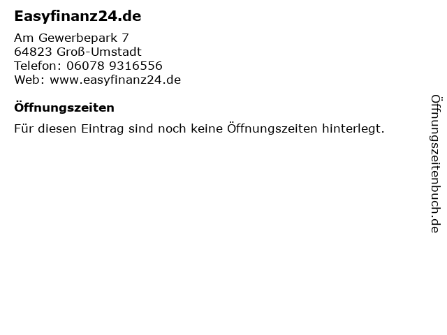 | Öffnungszeiten Easyfinanz24.de in Groß-Umstadt anzeigen | |