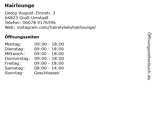 | Adresse Hairlounge in Groß-Umstadt anzeigen |