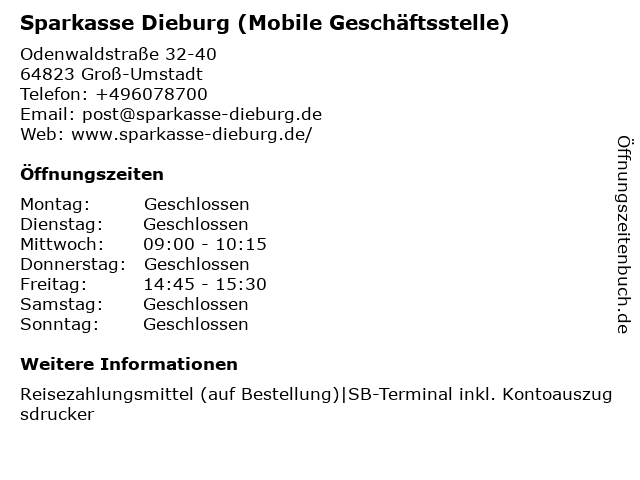 Branchen & Suchbegriffe zu Sparkasse Darmstadt und Dieburg (ehem. SK Dieburg) (Mobile Geschäftsstelle):ehem., geschäftsstelle, mobile, sk, sparkasse |