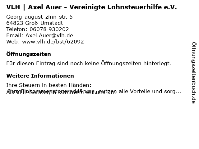 | VLH | Axel Auer - Vereinigte Lohnsteuerhilfe e.V. anrufen | |