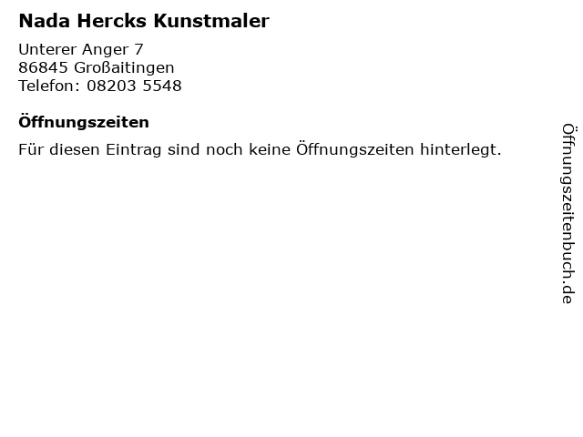 | Öffnungszeiten Nada Hercks Kunstmaler in Großaitingen anzeigen | |