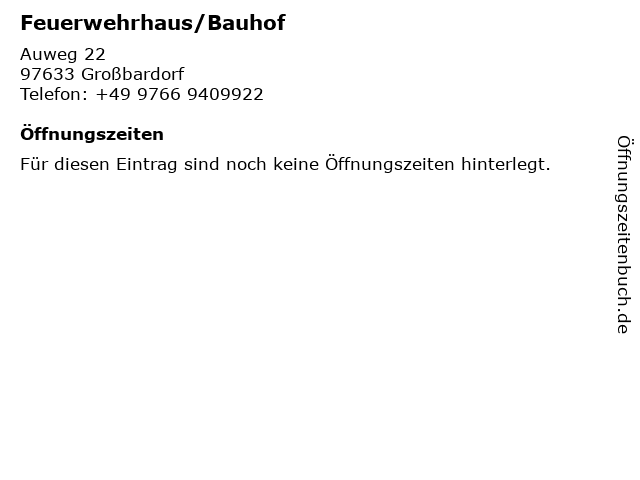 | Öffnungszeiten Feuerwehrhaus/Bauhof in Großbardorf anzeigen | |