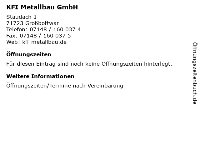 | Öffnungszeiten KFI Metallbau GmbH in Großbottwar anzeigen | |