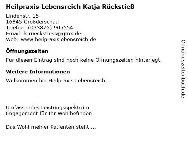 | Heilpraxis Lebensreich Katja Rückstieß anrufen | |