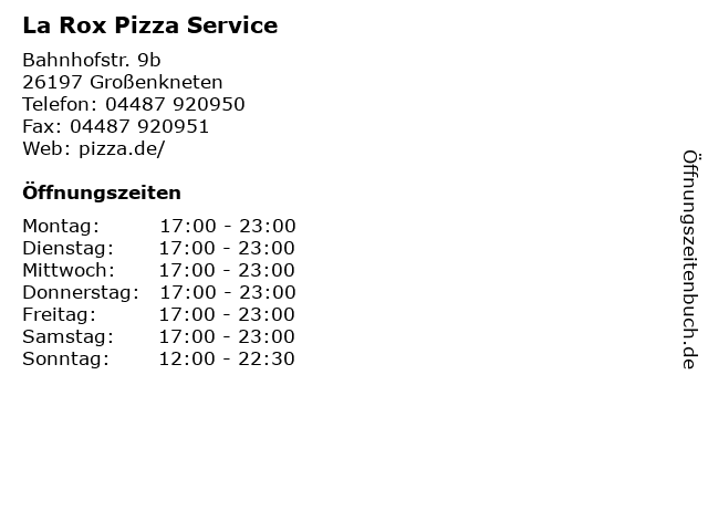 | Öffnungszeiten La Rox Pizza Service in Großenkneten anzeigen | |