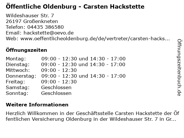 Branchen & Suchbegriffe zu Öffentliche Oldenburg - Carsten Hackstette:carsten, hackstette, öffentliche |