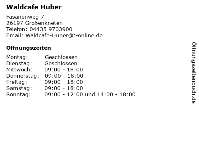 | Öffnungszeiten Waldcafe Huber in Großenkneten anzeigen | |
