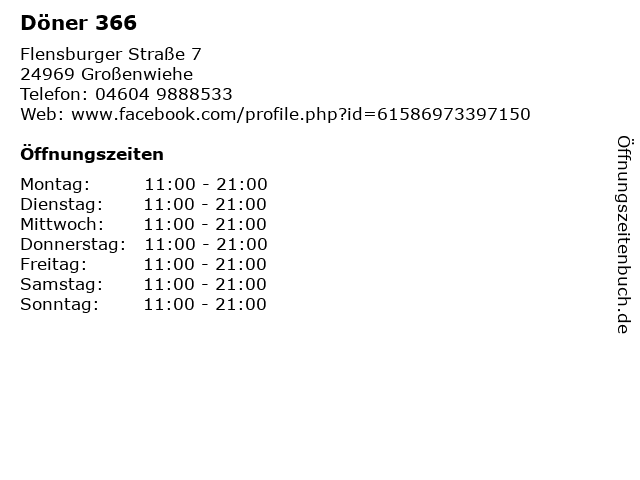 Döner 366 in Großenwiehe: Telefonnummer, Öffnungszeiten und Adresse