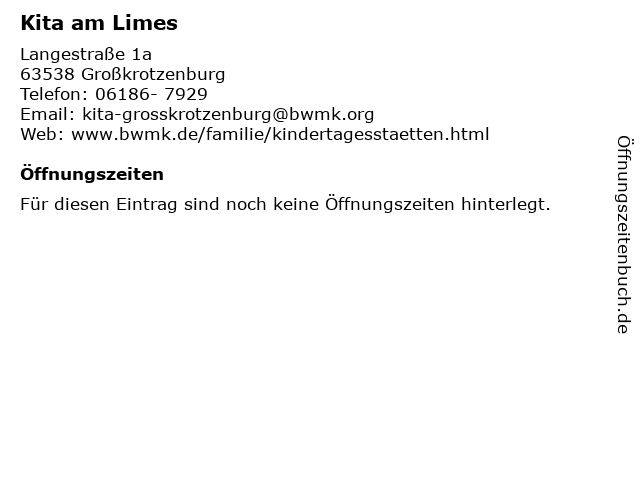 | Öffnungszeiten Kita am Limes in Großkrotzenburg anzeigen | |