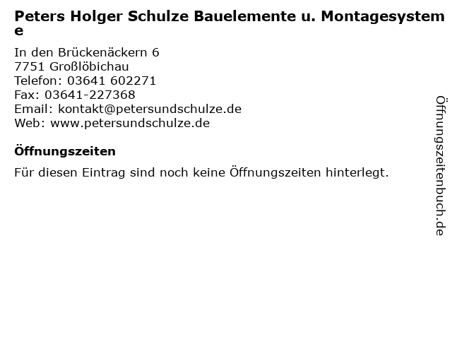 Peters Holger Schulze Bauelemente u. Montagesysteme anrufen | |