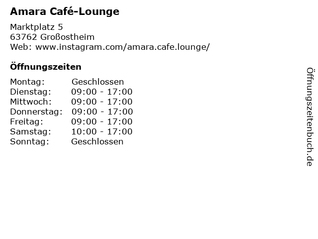 | Öffnungszeiten Amara Café-Lounge in Großostheim anzeigen | |