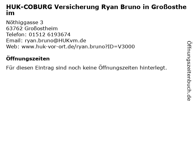 | HUK-COBURG Versicherung Ryan Bruno in Großostheim anrufen | |