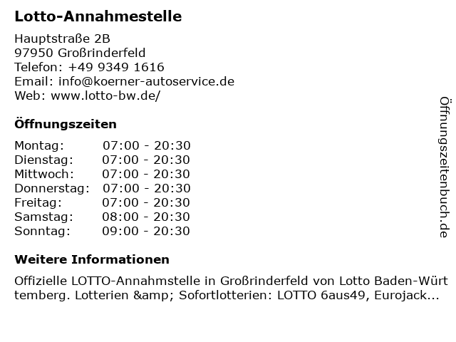 | Öffnungszeiten Lotto-Annahmestelle in Großrinderfeld anzeigen | |