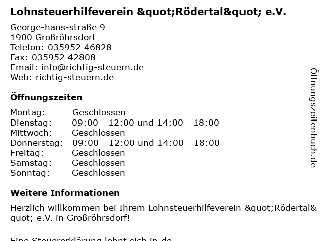 Branchen & Suchbegriffe zu Lohnsteuerhilfeverein "Rödertal" e.V.:"rödertal", e.v., lohnsteuerhilfeverein |