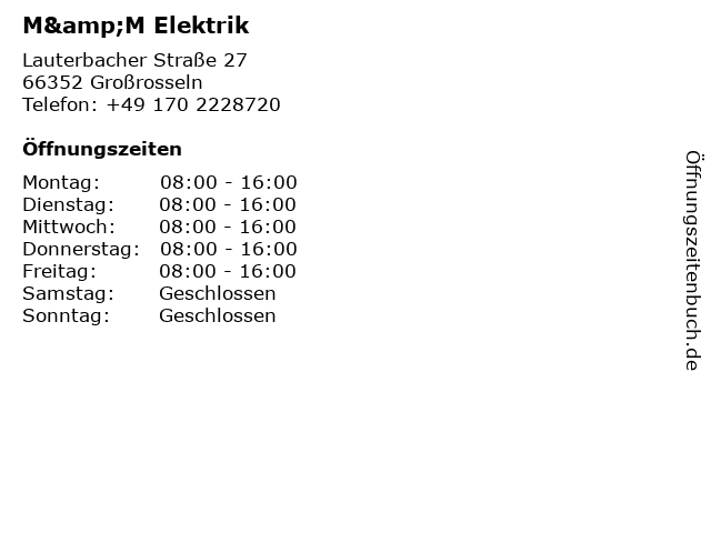 M&M Elektrik in Großrosseln: Telefonnummer, Öffnungszeiten und Adresse