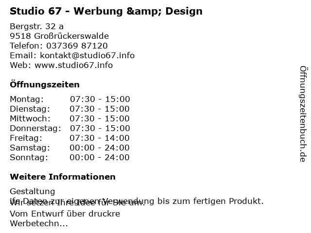 Branchen & Suchbegriffe zu Studio 67 - Werbung & Design:67, anbieter für werbeartikel, design, druckerei für siebdruck, schilderladen, studio, textilfabrik, werbung |