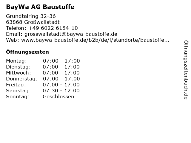 | Öffnungszeiten BayWa AG Baustoffe in Großwallstadt anzeigen | |