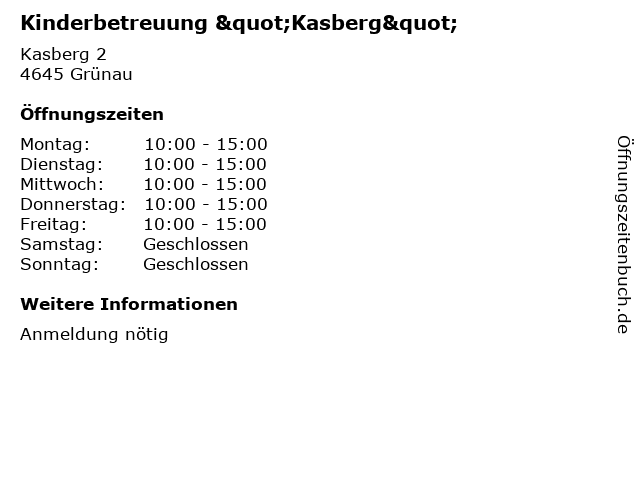 Öffnungszeiten Kinderbetreuung "Kasberg"