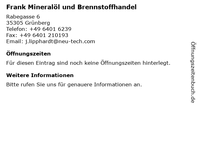 | Frank Mineralöl und Brennstoffhandel anrufen | |