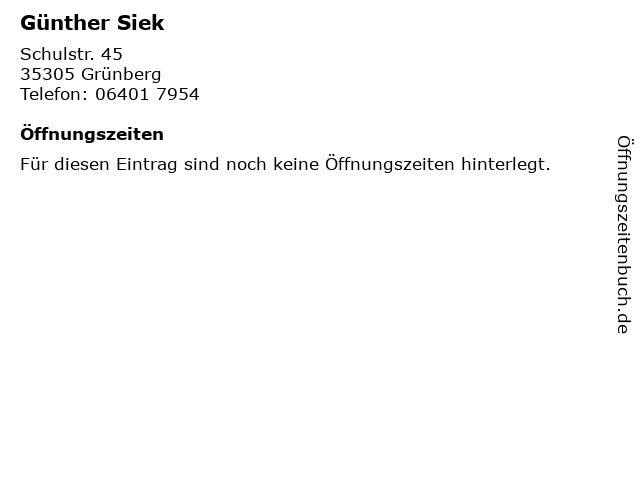 | Öffnungszeiten Günther Siek in Grünberg anzeigen | |