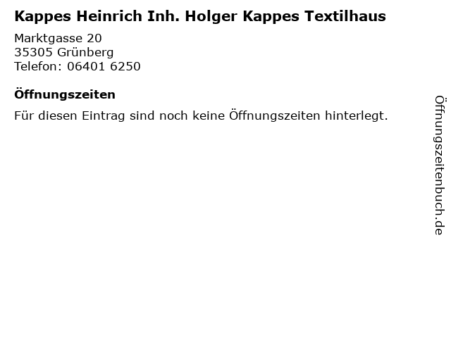 | Kappes Heinrich Inh. Holger Kappes Textilhaus anrufen | |