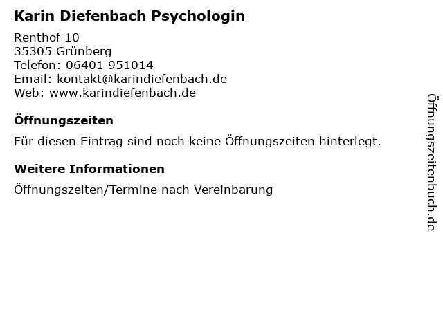 Branchen & Suchbegriffe zu Karin Diefenbach Psychologin:diefenbach, karin, psychologen, psychologin |