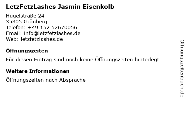| LetzFetzLashes Jasmin Eisenkolb anrufen | |