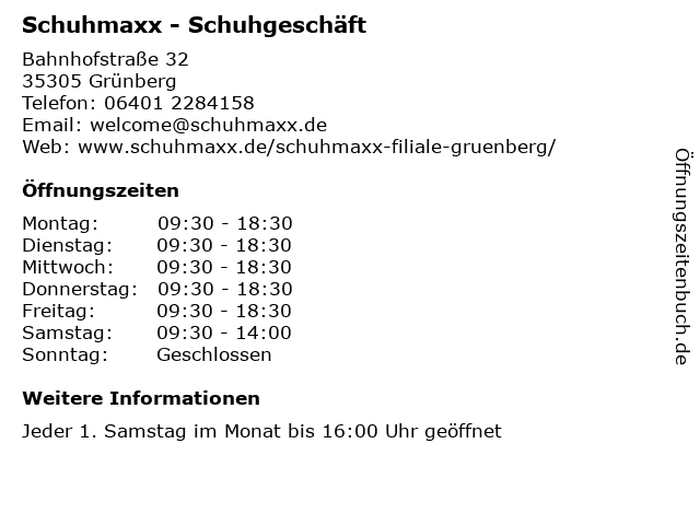 | Öffnungszeiten Schuhmaxx - Schuhgeschäft in Grünberg anzeigen | |