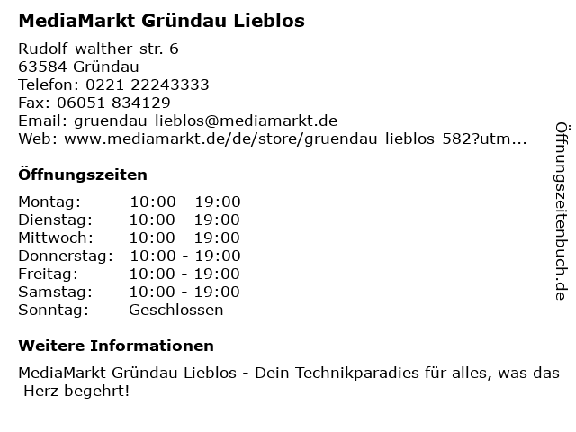 Öffnungszeiten MediaMarkt Gründau Lieblos in Gründau anzeigen | |