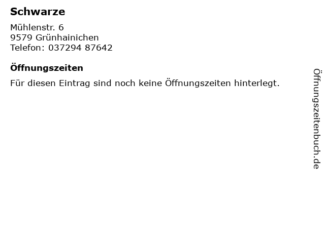 | Öffnungszeiten Schwarze in Grünhainichen anzeigen | |