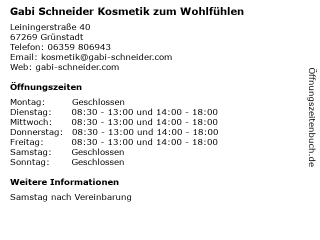 | Freitag | 08:30-13:00 und 14:00-18:00 |
